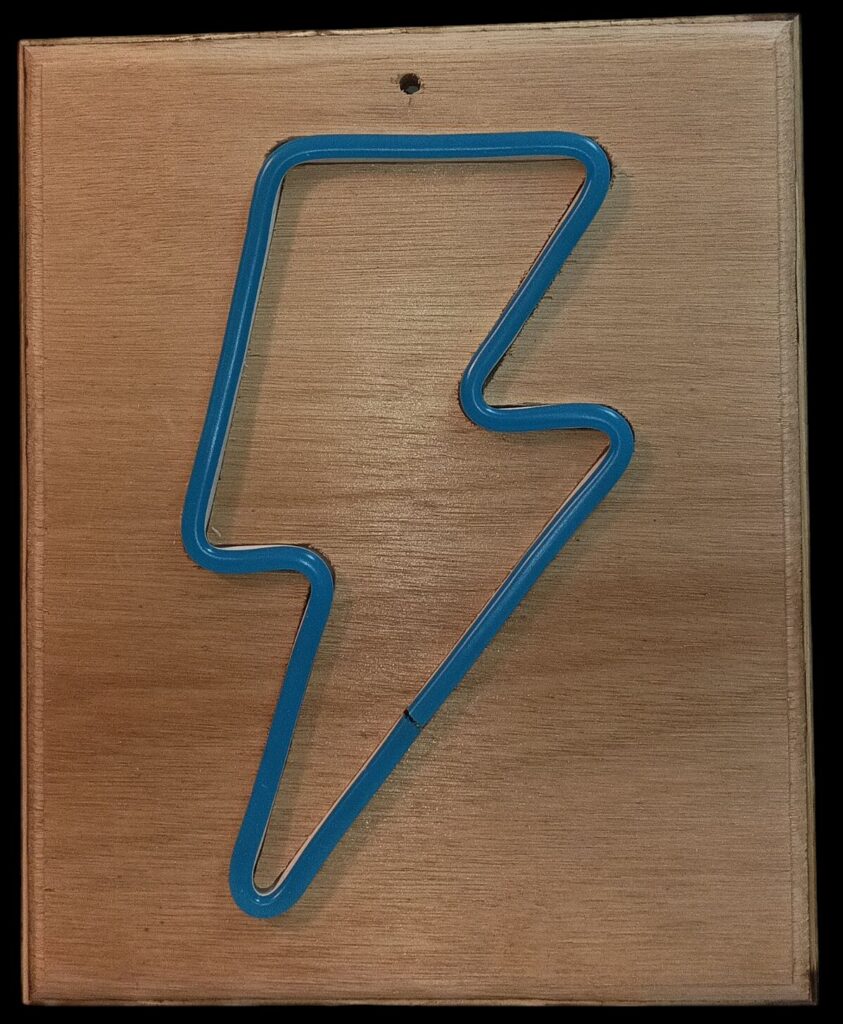 Rayo en Neón Led sobre una base de madera multilaminada laqueada. Los colores del Neón son a elección.