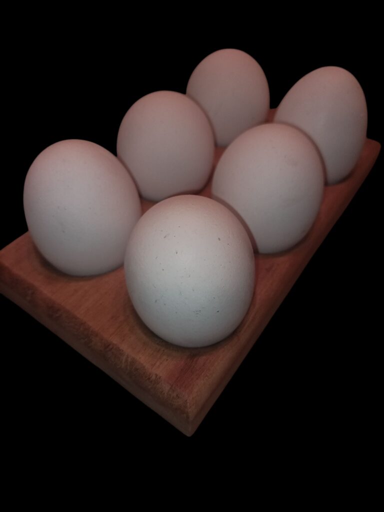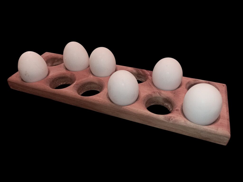 Huevera hecha en madera maciza laqueada. Apta para toda medida de huevos, chicos, medianos o grandes. Ideal para decorar la cocina y tener los huevos a mano para cocinar.