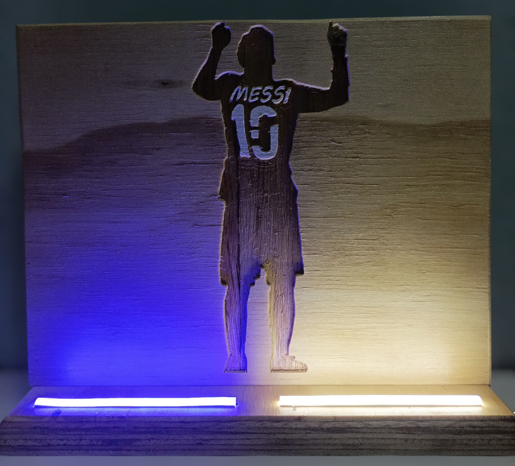 Exhibidor fabricado en multilaminado, con iluminación decorativa mediante Neón LED. Ideal para destacar productos, marcas o slogans en vidrieras, stands, eventos o puntos de venta. El diseño puede personalizarse con cortes CNC y letras en acrílico o MDF. Efecto visual moderno y atractivo con bajo consumo eléctrico.